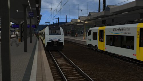 Goedenavond meester. Jij neemt op deze zomeravond twee stellen BR 460 over, die net van opstelterrein Deutzer Feld zijn komen rijden. Je rijdt op de RB 26 met eindbestemming Mainz, maar voor jou eindigt de rit al in Koblenz. De rit zal ruim 1:35 uur duren. De dienstregeling is vrij krap. Rijd dus stevig door. Op Remagen zul je worden ingehaald door twee treinen. Je vertrektijd is 18:50 uur.