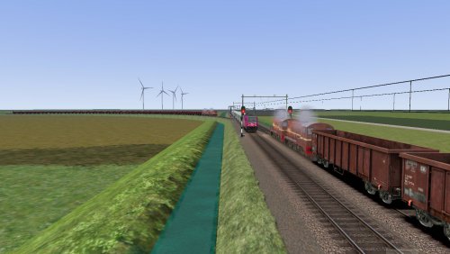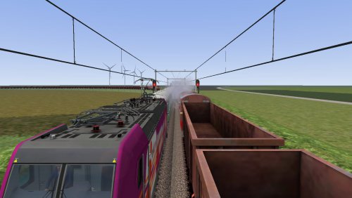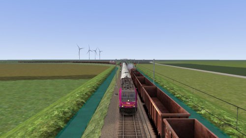 Hello master you drive a special train on the route fictiva consisting of two HSL purple traxxes and turquoise plan D's