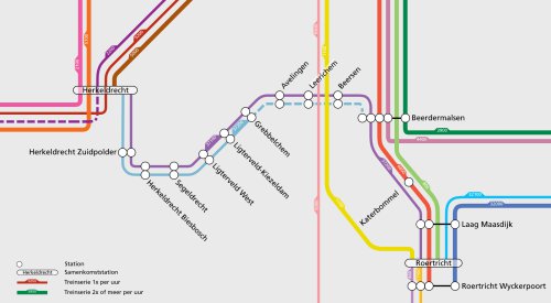 Starting in Herkeldrecht in South Holland, you pass meadows, through various villages and towns, straight through the Betuwe and you eventually end up in the hilly landscape of Limburg, and the end point, the border station of Roertricht.