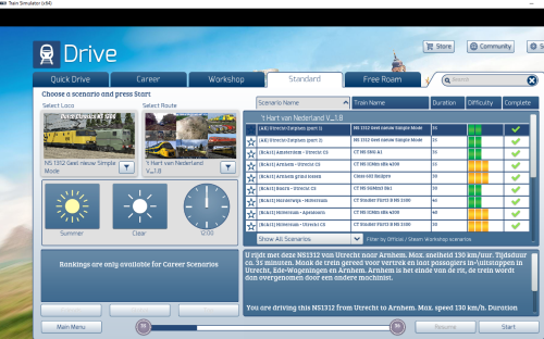 In dit scenario rijdt U met een NS1312 van Dutch-Classic van Utrecht naar Zutphen.
