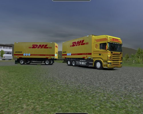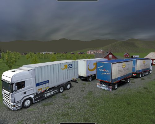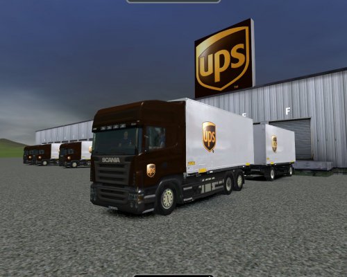 Truckpack contains Scania-GLS with Trailer, Scania-DHL with Trailer, Scania-DWB with Trailer, Scania-UPS with Trailer and Scania-NOR-Cargo with Trailer.