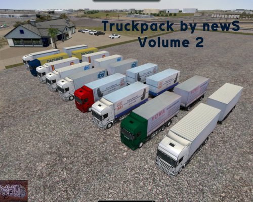 Truckpack contains Scania-AXIS with Trailer, Scania-Dachser with Trailer, Scania-DWB with Trailer, Scania-GP with Trailer, Scania-IDS with Trailer, Scania-IDS-b with Trailer, Scania-IDS-c with Trailer, Scania-ISRI with Trailer, Scania-ISRI-b with Trailer, Scania-Voewa with Trailer and Scania-white with Trailer.