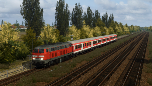 Welcome to 2008: The last year DB Regio operates the RB50 Bad Spendau - Querleben line. ODEG will take over operations on the line with the 2009 timetable change, replacing the fan-favorite 218 + N wagon diagrams with RS1 and GTW DMU's. Today, you will take the ever familiar 218 on the RB50 from Bad Spendau to Querleben. The platforms are often short, so be alert when braking!