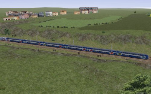 Set dubbeldekswagons type VB2N in transilien kleuren, Ile-de-France en in Nord Pas-de-Calais kleurstelling.