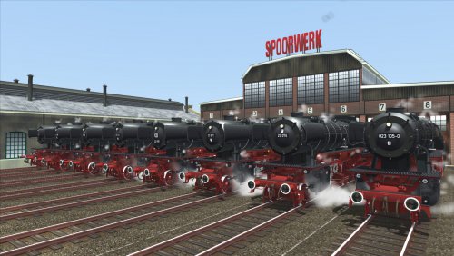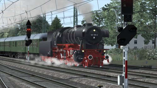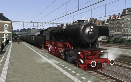 The first 2-6-2 locomotives of the series 23 were delivered to the Deutsche Bundesbahn (DB) by the firm of Henschel in 1950. These engines were designed to pull heavy passenger trains as replacements for the aging P8, the first of which had been built for the KPEV, one of the predecessors of DRG. Until 1959 a total of 105 engines of these powerful and handsome series have been constructed by several German locomotive builders. Number 23 105 deserves special mentioning since it was the last new steam locomotive of which the DB took delivery. The type is not only interesting from a technical point of view but also because a rather large number of locos have been saved from the cutter’s torch. No less than eight engines can still be admired in railway museums or are being operated by preserved railways in Holland, Germany and Switzerland. These survivors have been recreated by us as rolling stock objects for TS 2017.