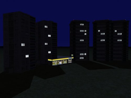 Set of 5 tall modern city houses (with day, night and winter textures).