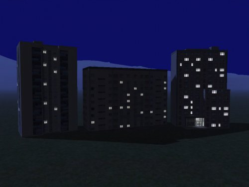 Set van 3 hoogbouw woongebouwen (met texturen voor dag, nacht en winter).