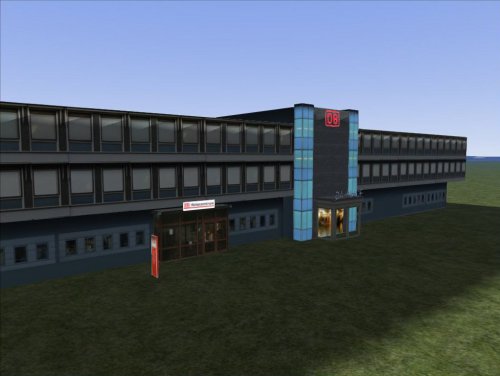 Een fictief treinstation + een voetgangersbrug. Het object heeft dag-, nacht- en wintertexturen.
