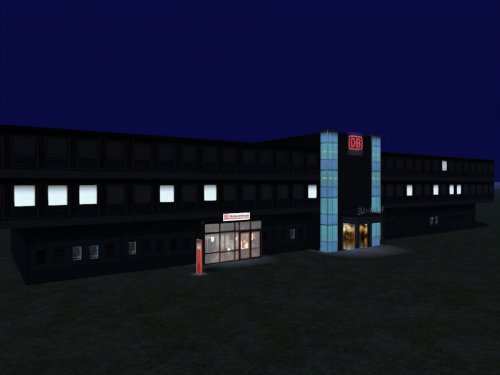 A fictional railway station + a footbridge. The object has day, night and winter textures.