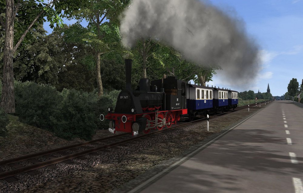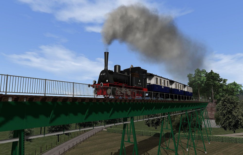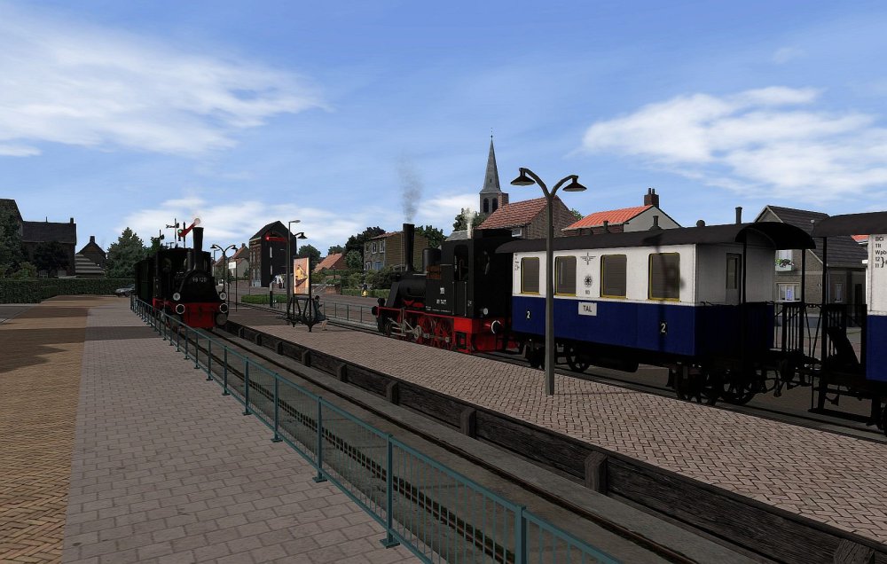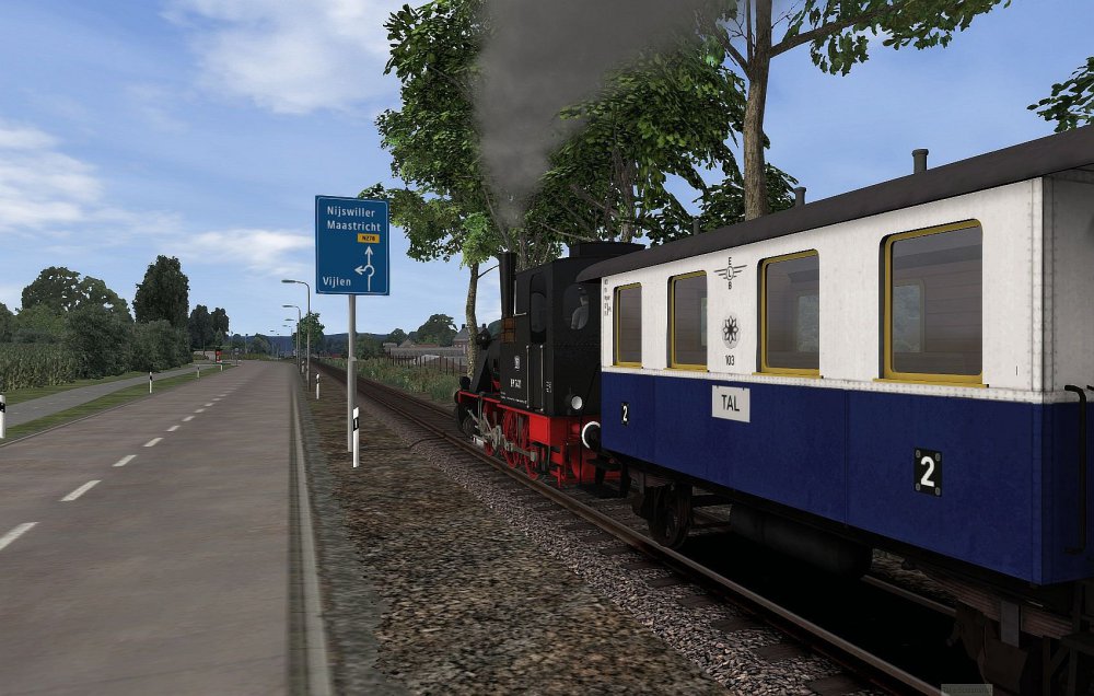 De hele lijn stoomtram Maastricht - Vaals is voorzien van scenery. In onderstaande video is deze lijn te bekijken. Nu eens niet vanuit de cabine maar als een soort van Drone die de trein volgt. De Wadloper is in de kleuren van de LTM (Limburgse Tramweg Maatschappij) geschilderd (dank aan Mat47). Het is nu de puntjes op de "i" zetten, scenario's maken testen en handleiding maken. Release van de lijn laat dus nog wel even op zich wachten. Daarom geniet van de video. -