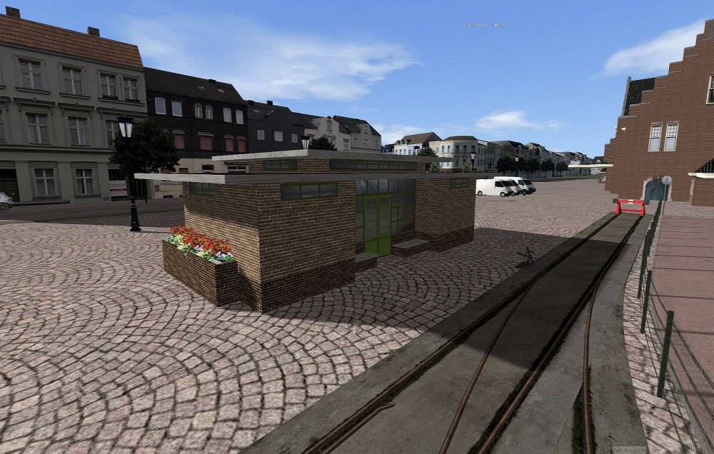 In 1929 heeft de Limburgsche Tramweg Maatschappij (LTM) ten behoeve van de tramlijn Maastricht - Vaals voor het station van Maastricht een wachthuisje gebouwd. Dit gebouw is na de sloop van de tramlijn blijven staan en diende toen als wachthuisje voor de busdiensten van de LTM. In 1964 is dit gebouwtje afgebroken. Van dit gebouw heb ik een object gemaakt en in de route geplaatst. De route vordert dusdanig dat ik ook begonnen ben met het maken van een eerste scenario, naast de afbeeldingen van het wachthuisje ook wat plaatjes van dit scenario. Het wachthuisje van de LTM op het stationsplein in Maastricht. Het model van het wachthuisje. Het wachthuisje in de route. De stoomtram voorbij Lemiers op weg naar Gulpen We rijden richting Maastricht. Tussen Nijswiller en Wahlwiller. Op de brug over het dal van de Gulp. Halte Margraten. Op weg naar Bemelen. Binnenkomst in Maastricht, hier rijdt de tram een stukje over het NS spoor. (voor de kritische kijkers, ontbrekende stukje bovenleiding is inmiddels gerepareerd.) -
