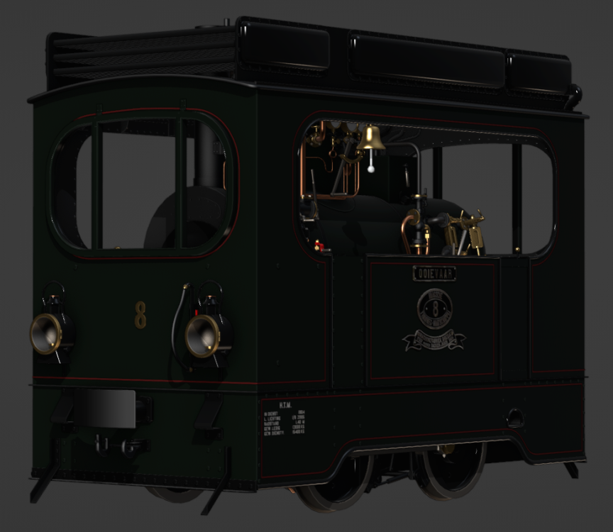 Dank jullie allemaal! Hij zit inmiddels in het spel, maar voorlopig alleen nog maar als statisch object. In de achtergrond spiekt er ook een ander lokje die ik in elkaar gemanoeuvreerd heb, het eerste prototype van Backer & Rueb, zoals voor de wedstrijd van de Arnhemsche Tramweg Maatschappij, verwacht die ook in de toekomst! -
