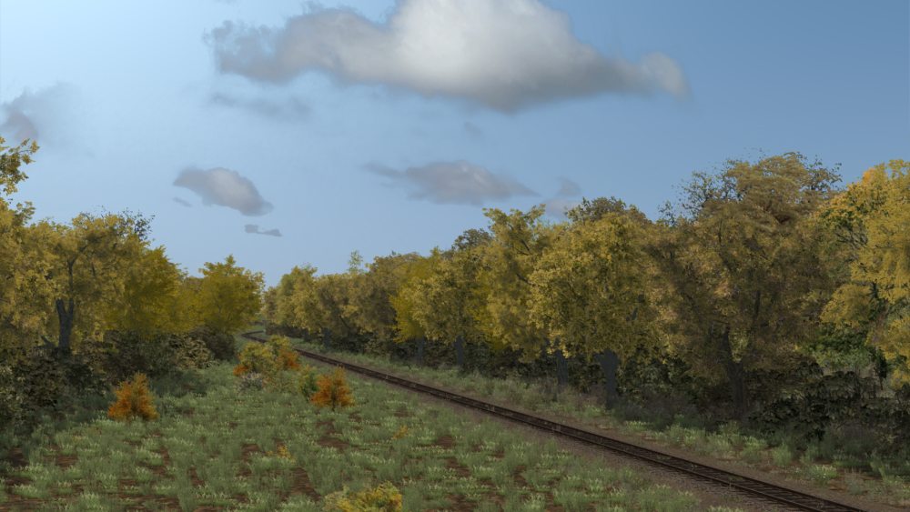 Genoeg ideeën, weinig screenshots. Momenteel ben ik ongeveer 50% met de scenery tussen Kersingen en de natuurgebied-halte. Hier een impressie.