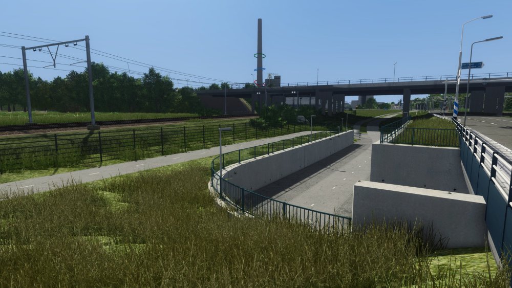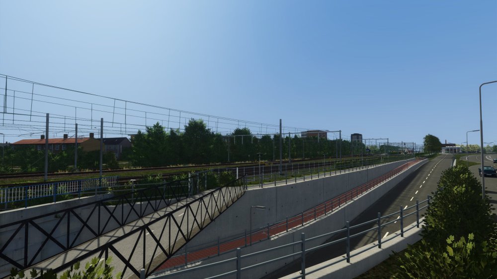 Goedemorgen, Ik heb een klein probleempje, waar ik graag advies voor bij wil krijgen. Zie onderstaande screenshot. Een lastig stuk wat gaat komen, waar ik nog niet helemaal een oplossing voor heb bedacht, zijn de hoogteverschillen tov het spoor net na Zdk richting Hn. Probleemvraag De fietspad onder het spoor door lijkt in realiteit net zo hoog te liggen als de groene velden en het wandelgebied wat er tegenover ligt. Vanuit de cabine heb ik het idee dat het groene veld en de wandelgebied hoger liggen, waardoor je vanuit de cabine het idee krijgt dat het niet heel veel meter scheelt tot aan de bovenkant van de oppervlakte van zowel het wandelgebied als de groene veld naast het spoor (komend vanuit Zaandam Kogerveld richting Purmerend/Hoorn). Het probleem is ook dat ik 1 water oppervlak wil gebruiken omdat je met hoogteverschillen overlappingen krijgt wat niet helemaal aansluit op de water oppervlaktes an sich. Maar het hoogteverschil tov het spoor en de fietspad is precies kloppend. Wie kan mij hierin adviseren? -