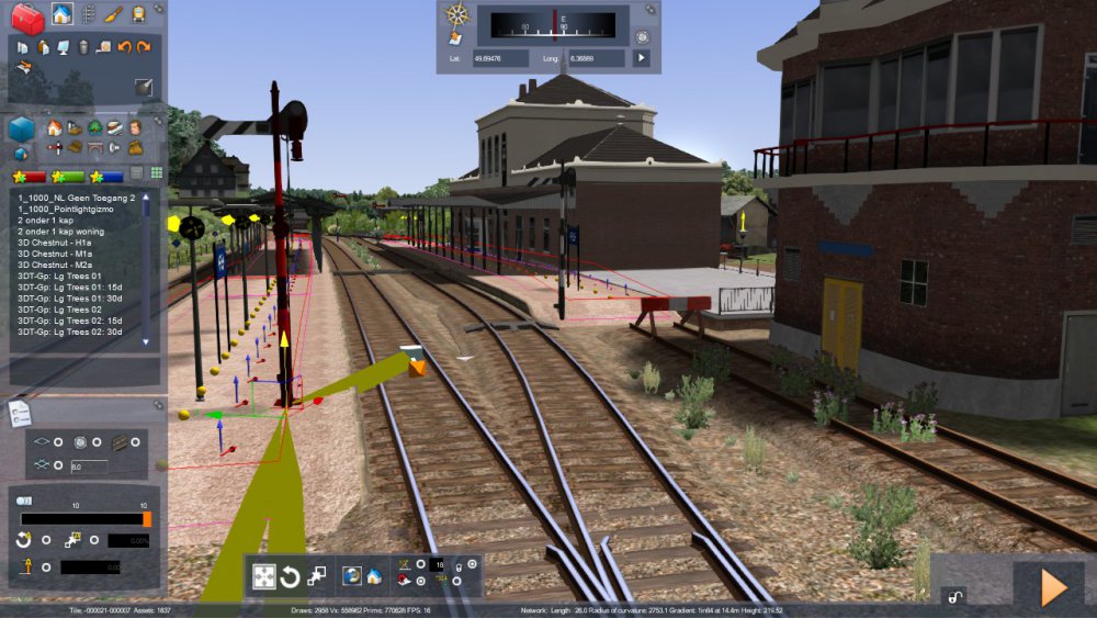 Hieronder een voorbeeld van het plaatsen van de seinen met diens pijlen op de juiste plaats in mijn project waar ik hard aan bouw.