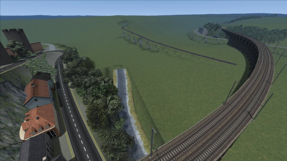 Het traject tussen Ettelbrück en Schieren ligt tegen de heuvelwant aan waardoor het spoor door een aantal viaducten word gekruist. Ook ligt hier een grote begraafplaats naast het spoor Begonnen aan de bovenleiding. Veel verschillende types geprobeerd maar deze Belgische past het beste. Inmiddels is de scenery bij het station ook langzaam aan het groeien -
