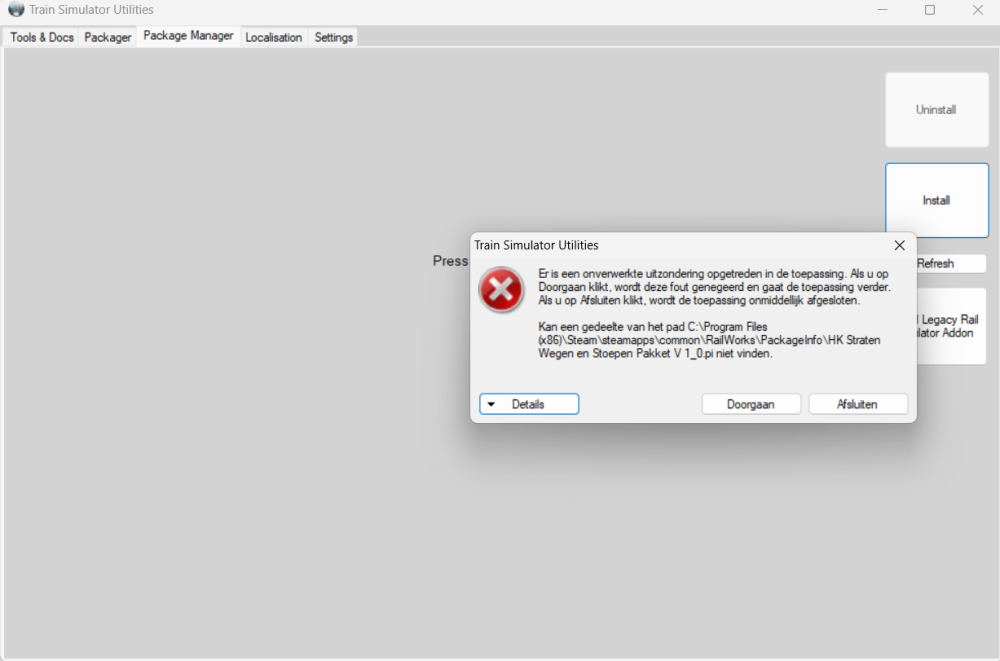 2. Sinds kort heb ik een nieuwe laptop aangeschaft en wil al te graag wat weer routes en addons downloaden. Helaas werkt het programma Utilities niet, bij het installeren krijg ik een foutmelding (onderaan staat een screenshot). Vervolgens is er dus niks geïnstalleerd. Weet iemand hier meer van af? Hoor het graag terug!