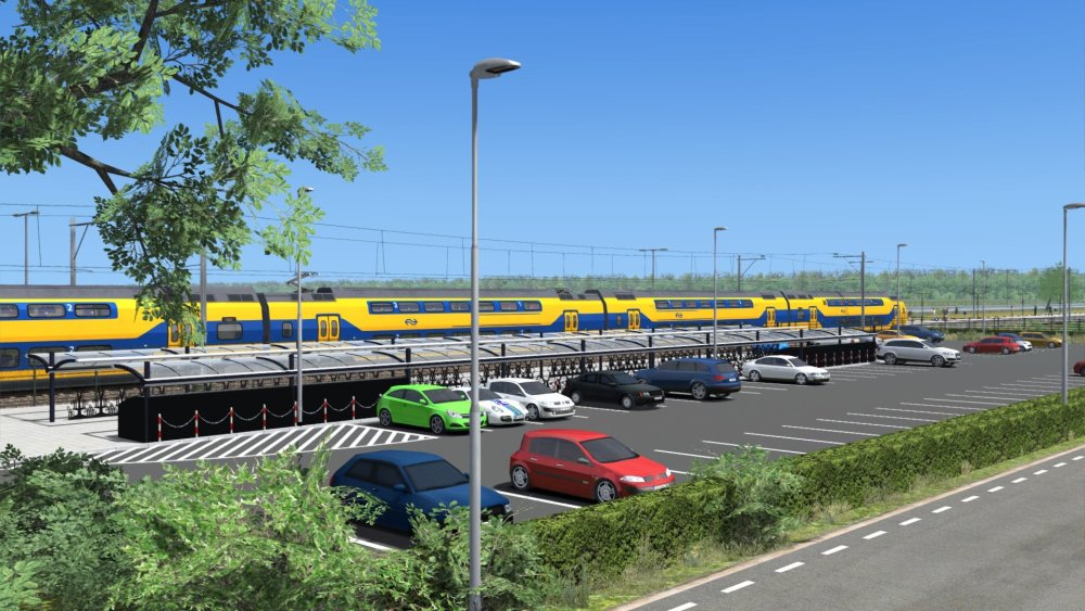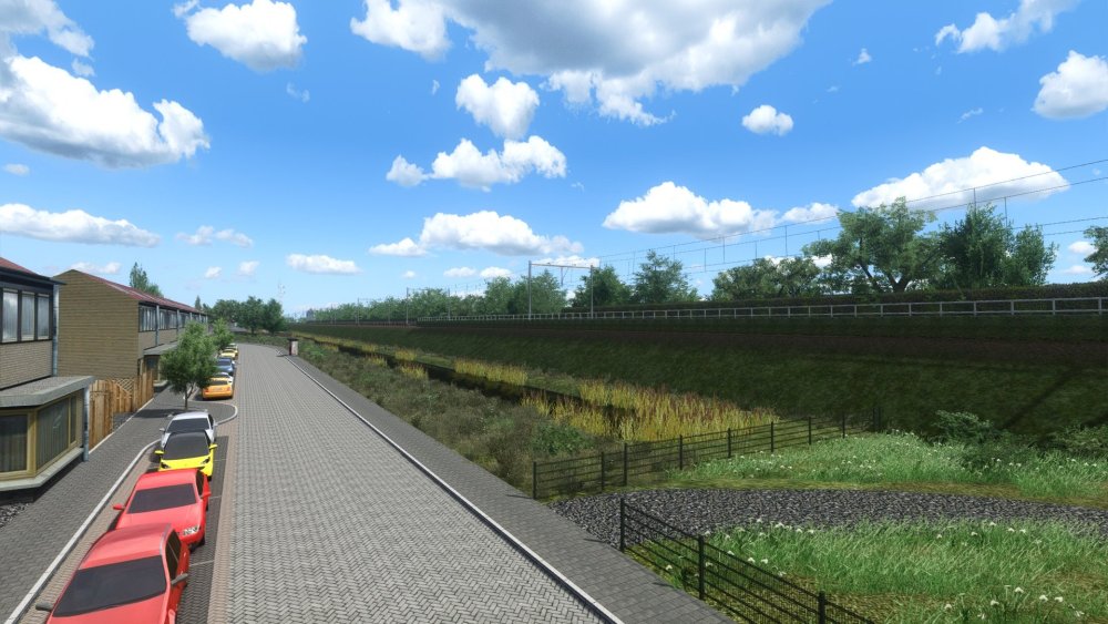 De laatste tijd ben ik erg veel bezig geweest met het verder invullen van de scenery. Dit gaat over stukken waar er al een basis scenery lag, maar deze nog verder ingevuld kon worden (auto's in de parkeervakken, boompjes/struiken langs het spoor, kleine hekjes etc.). De basis scenery kost mij meer tijd om te bedenken dan het verder invullen hiervan, dus het is niet heel veel moeite gelukkig. Er is nog een goede 15km waar dit gedaan moet worden tot ik het meest oostelijke station heb bereikt.