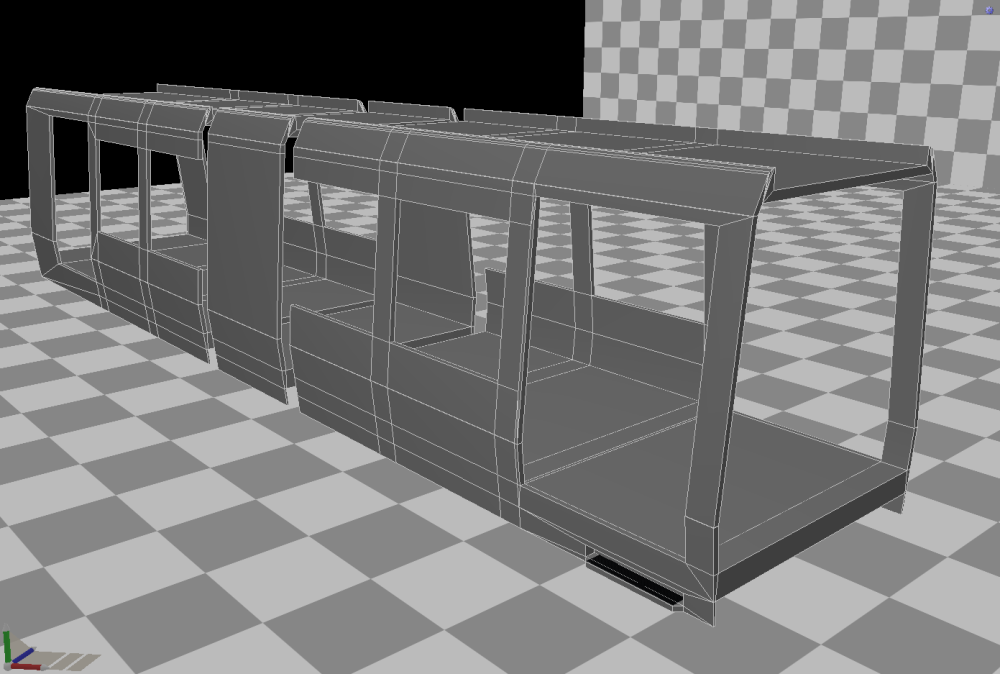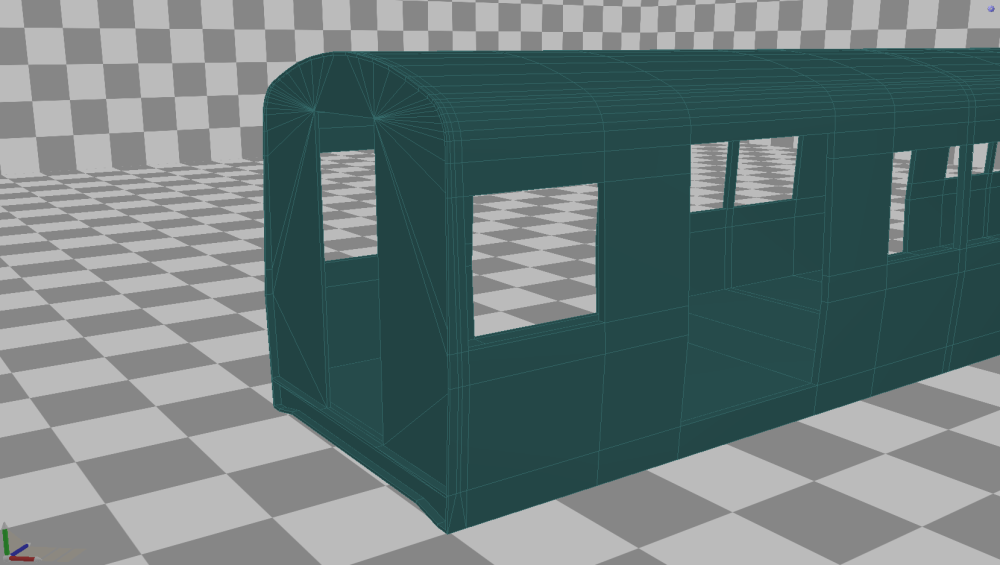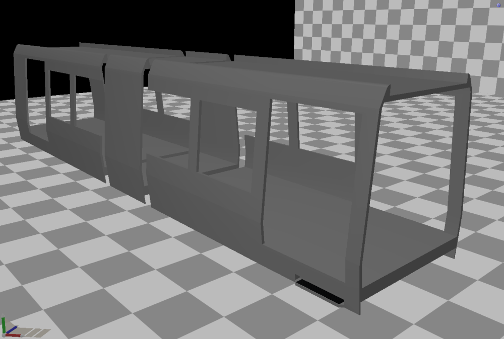 Nou, het heeft ff geduurd, maar dan heb je ook wat. Een hele tijd werd de sleur van meer dan duizend blueprints maken me te veel, en had ik een soort writer's block (3d-builder's block?) voor het sporenpakketje, en had ik het ook nog eens heel druk. Eindelijk wat tijd en moed kunnen vinden, en de slag weer te pakken gekregen. Sterker zelfs, ik denk ik dit hels karwei ongeveer september/oktober (ik denk eigenlijk augustus/september, dus ik zeg september/oktober) ongeveer wel afgerond zal hebben. En na weer flink wat spoortjes geëxporteerd te hebben, heb ik mezelf ook weer toegestaan heel sporadisch (spooradisch haha ?) aan het materieel te werken. Weet niet of ik dit al eens had laten zien, maar dit is het begin van de (uiteraard werkende) traverse van de werkplaats Kleiweg. Hoop dat de bestuurder van de MOSI toevallig een gasmasker bijhad. Zal wel met het pivot van de smoke emitter hebben zitten spelen of het komt de open deuren denk ik. Dat, of Cheech & Chong werken nou bij de RET. Wat nieuwe spoortypes, waarvan sommige in combinatie met deze derde railhouder niet eens in Rotterdam voorkomen, maar omdat de sporen ook voor de Amsterdamse metro en naar ik begrijp een fictieve route gebruikt gaan worden, toch maar heb toegevoegd om niemand wat te ontzeggen. Begin van een nieuwe carosserie voor Type M. Dankzij de echte tekening kon ik duidelijker zien dat de kop niet afrond, maar gewoon vlak afloopt. Deed pijn om overnieuw te beginnen, maar blij dat ik het gedaan heb. Dit is wel een stuk professioneler aangepakt. Een groot verschil is bijvoorbeeld dit knikje onder de voorruit (welke nog verticaal een kleine ronding naar beneden moet krijgen). Deze was in het vorige model wel aanwezig, maar erg lelijk, omdat ik hem pas later in het model heb gezet, omdat hij me eerder niet opviel. Er vanaf het begin rekening mee houden doet een boel voor je. Zelfde geldt in mindere mate ook voor de schuin aflopende achterkant. In het vorige model benaderde deze de realiteit. Nu is hij gelijk aan de realiteit. ? De basis van de kopbakken van Types B, S, en R mag er ook zeker wezen, en is na een kleine opruiming als de bak helemaal dicht is tot mijn verbazing nog vrij low-poly gebleven ook! Mocht je je afvragen waarom ik op deze manier bouw, zo vermijd ik ook totaal het gebruik van booleans, welke nog wel eens bugs kunnen veroorzaken of andere vertices willen verplaatsen. Als ik dan toch overnieuw moest beginnen, dan deze keer ook graag goed. Ik ben er zelf vrij trots op en denk dat deze modellen straks heel mooi worden, zoals eerdere screens van de eerste proef voor middenbak ook al een beetje previewden. Zonder wireframe ziet het er al redelijk definitief uit. Als de middendeurpartij erin zit, kunnen de 3 verschillende koppen erop! Oh, wat heb ik daar zin in!
